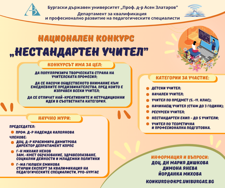 обявява Национален конкурс „НЕСТАНДАРТЕН УЧИТЕЛ“
